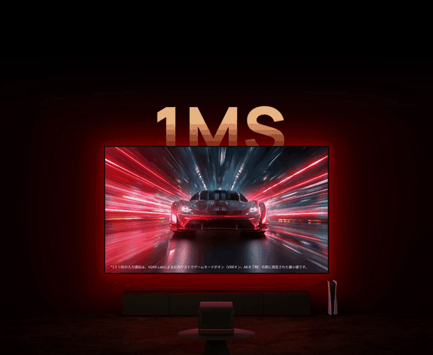 1msの低遅延でVRR対応、大画面でゲーム体験。1msの入力遅延(1080P@240Hz)により、大画面でも精緻で迫力あるゲーム体験を実現する。VRRとALLMに対応し、映像のズレやカクつきを抑えて滑らかな映像を提供。さらに、ブラックイコライザーやバーチャルクロスヘアなど、ゲーマーを支える機能も搭載している。