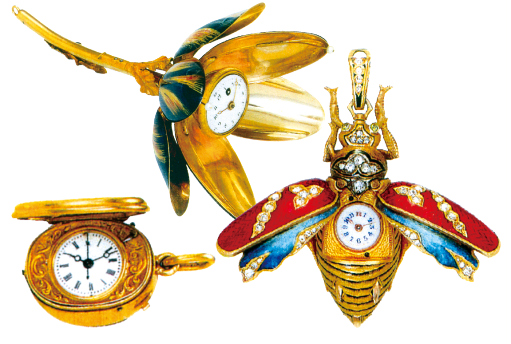 王侯貴族の女性たちが夢中になった美術工芸品のような腕時計だが、19世紀後半のイギリスやアメリカでは中産階級に向けた量産品へと姿を変えている。
