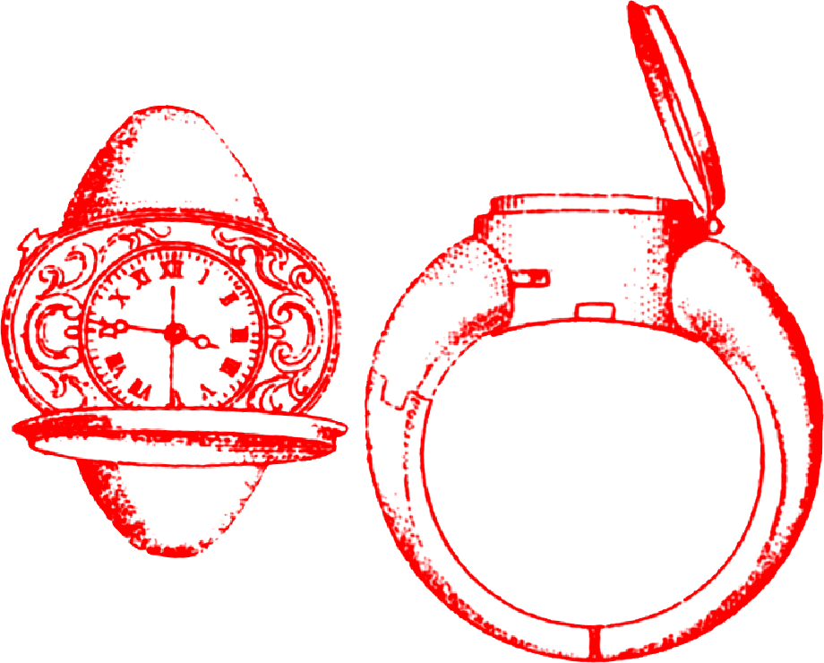 手で携帯できる大きさの時計が誕生したのは1500年前後のフランスやドイツだった。そして急速に小型化が進み、16世紀後半には時計付きの指輪も登場している。しかし当時、正確さはまったくあてにならなかった。とはいえ時計をもつことができるのは富裕な特権階級に限られていたから、精度を気にする人たちではない。むしろ時を刻む道具を身に着けることが自慢だった。ちなみに1日の誤差が数分にまで縮まったのは17世紀後期のこと。1675年にヒゲゼンマイという時計の精度を司る部品が発明されて以降だ。