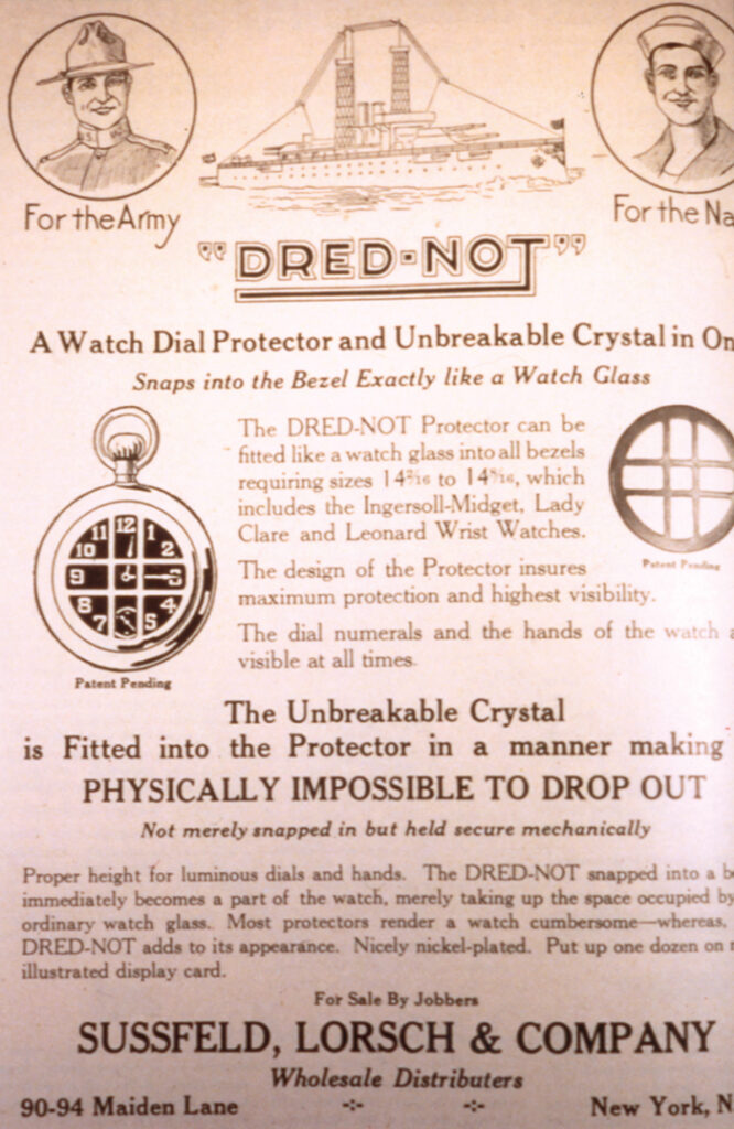 ところでポケットから飛び出した時計には問題があった。なにせ戦場で使うのだから日常生活よりは条件が過酷だ。いままでポケットのなかで守られていた時計は、外に出た途端に水や埃にさらされ、ミネラルガラスの風防や陶製の文字盤は衝撃を受けると割れてしまう。そこで時計にメタル製のカバ ―を取り付ける方法が登場。この方法は1880年にスイスの時計メーカー、 ジラール・ペルゴがドイツ海軍将校のために作ったという、懐中時計を改造した腕時計にもみられる。