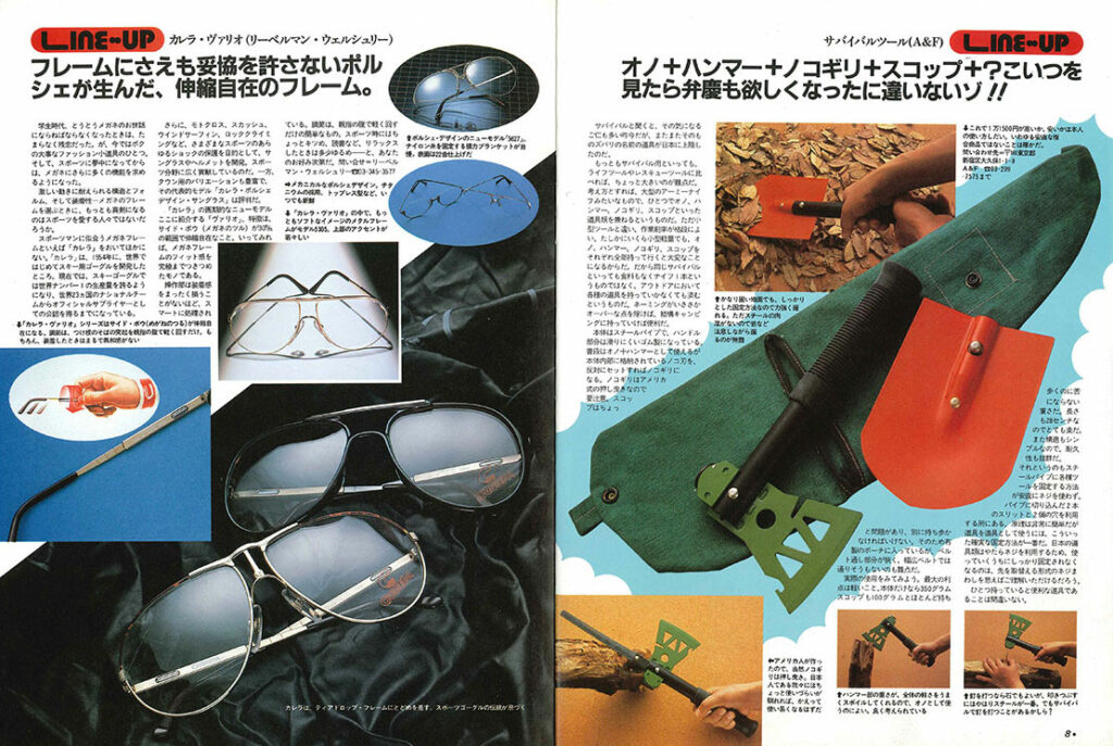 で、今号も記事の初っ端は「LINE・・UP」。11ページで10アイテムを紹介してます。今回のラインナップは、