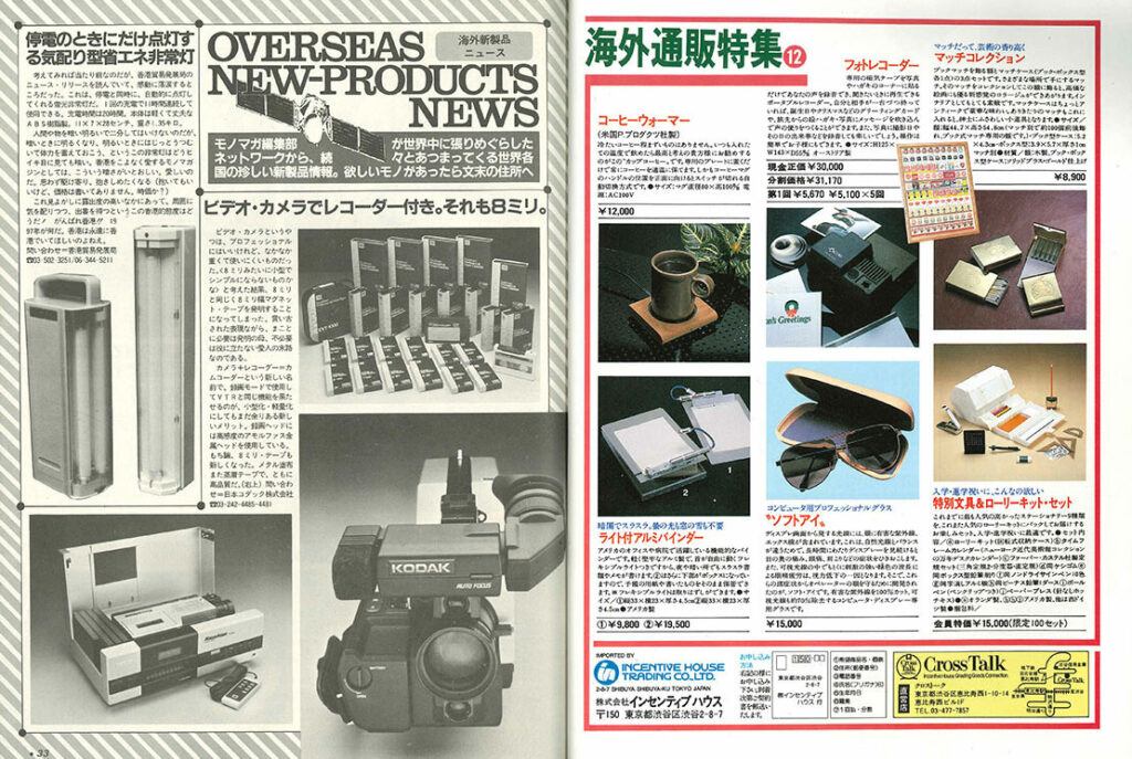 表紙をめくって、ひとつ目の広告は東芝の電話機です。「諸君、ガールフレンドの10人もいれば短縮ダイヤル発進機能はなくてはならぬぞ。」というどでかいキャッチコピーが目を引きます。最大10ヵ所まで電話番号を短縮記憶できるというのが、ここまでウリにできた時代です。