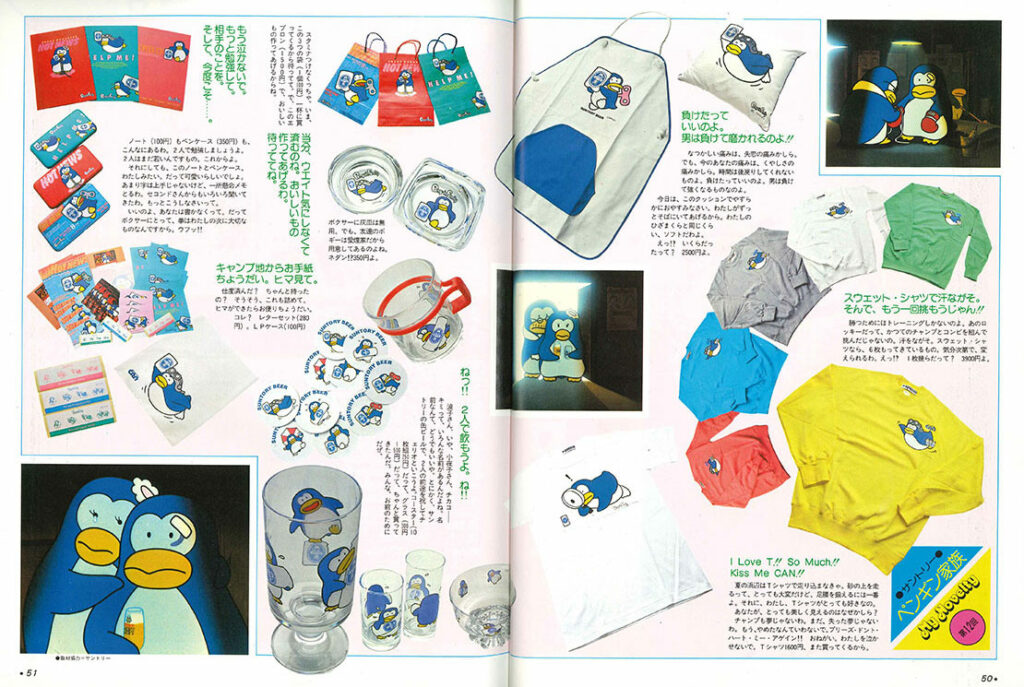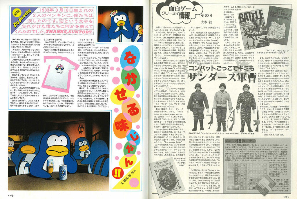 「My Novelty」はカラー3ページ構成。今回は「サントリー」のです。松田聖子さんの名曲「SWEET MEMORIES」とひこねのりおさんのペンギンアニメ。思い出すだけで涙が出そうになる・・・なんて人も、結構いるんじゃないでしょうか。