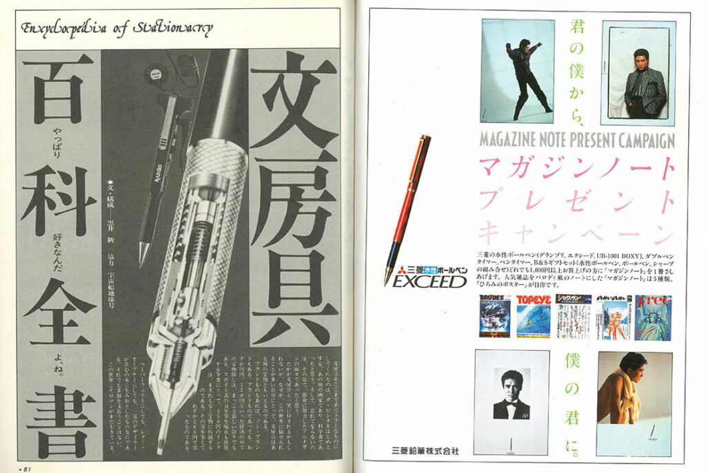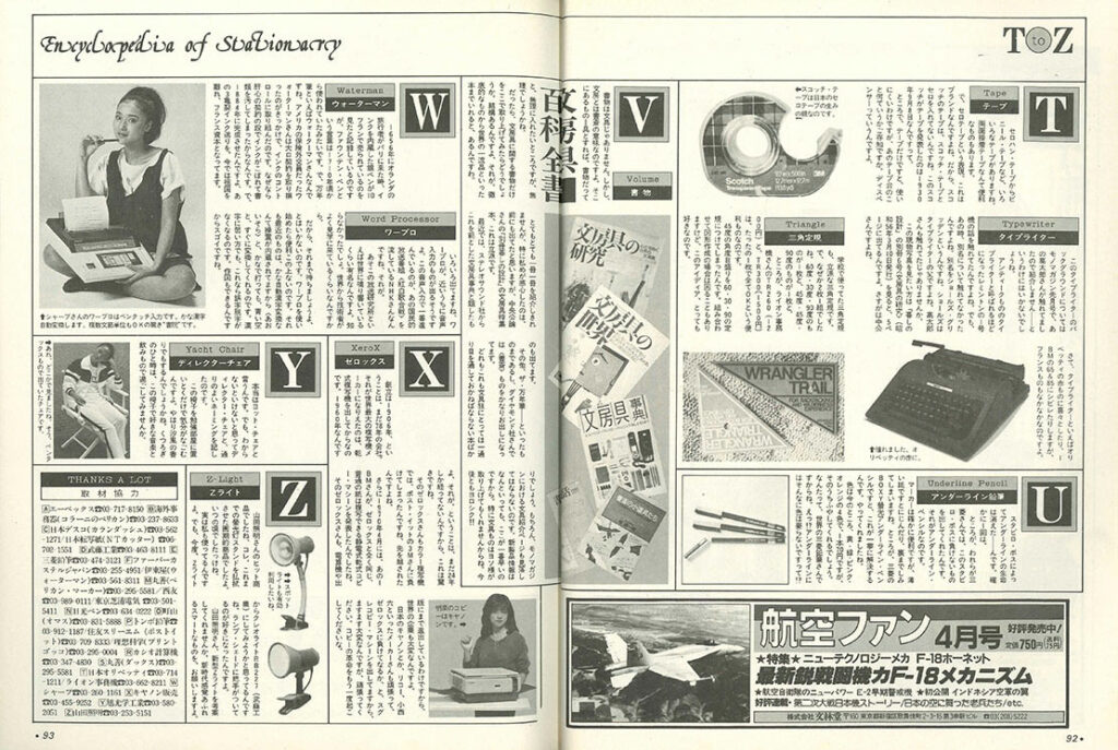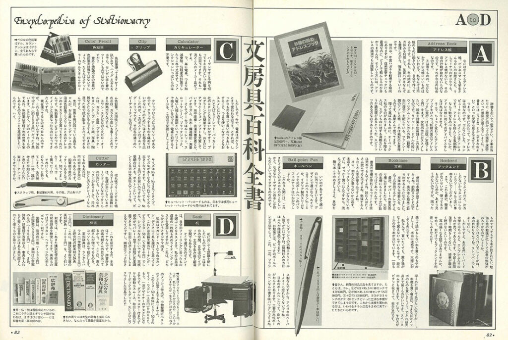 続きまして、モノクロ16ページ構成の「文房具百科全書」。特集の世界観を広げる感じの構成ですね。こちらにはみうら先生の絵は載ってません。