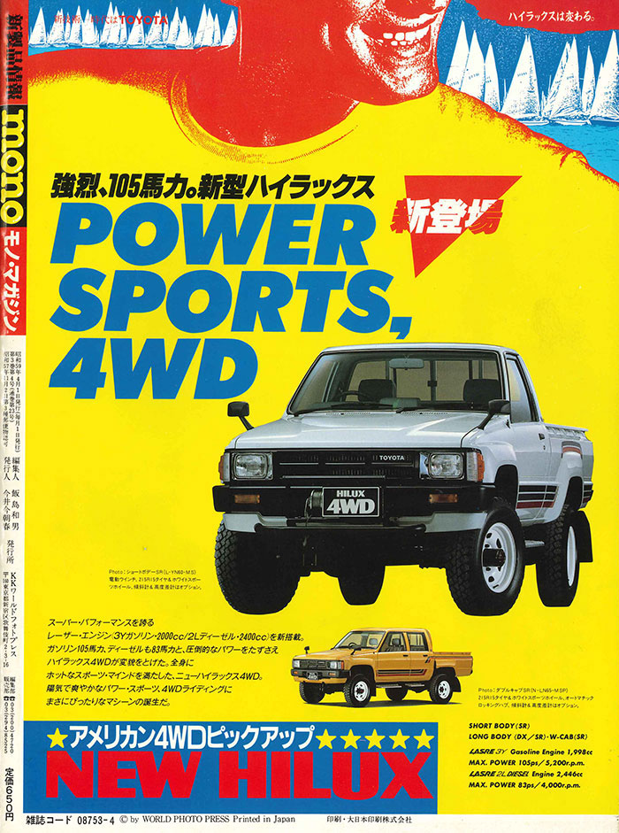 表4はトヨタの「ハイラックス」の広告です。とってもアメリカンを意識したデザインです。