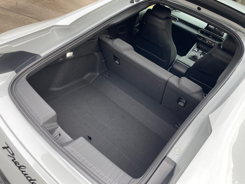 さて、プレリュードといえば後席の存在も忘れてはイケナイ。筆者は後席も少し体感したが、身長175cmで座高、血圧、血糖お高めの筆者だとリアガラスにアタマが当たってしまい、座るには腰の位置を前に出すか、若干ハテナのポーズ気味に頭を横に傾げる必要があった。なお、キチンと座った同行者(身長164cm)によると座って仕舞えば狭く感じることはなく、リアガラスがオープンカーみたいで窮屈さはなかった、そうだ。