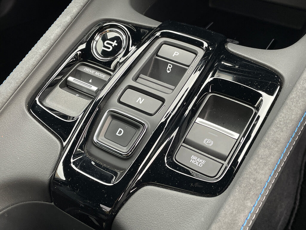 パワーユニットは2リッターの直4に2つのモーターを内蔵したCVTを組み合わせた、ホンダのハイブリッドシステム、e:HEVだ。エンジンのスペックは141PS、182Nmだがモーターの方が184PS、315Nmとパワフル。基本的に低中速域だとエンジンは発電用でモーター駆動、高速域や力を欲しい時はエンジンも駆動用になる。