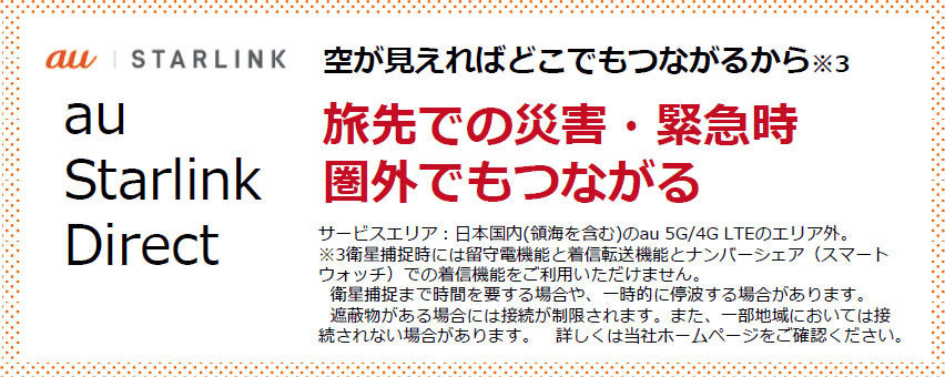 ※2:国内通信キャリアによる提供サービスとしては、auが初となります。 (2025年3月時点、 KDDI調べ)