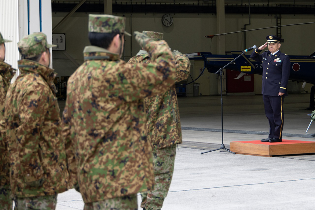 訓練では、まず開始にあたって第31代航空学校宇都宮分校長兼第28代北宇都宮駐屯地司令中薗伸吾1佐が訓示した後、宇都宮校所属機による編隊飛行訓練が行なわれました。