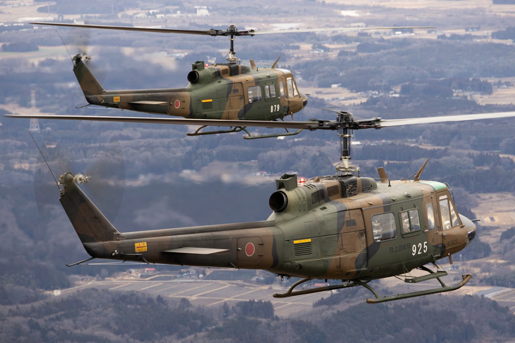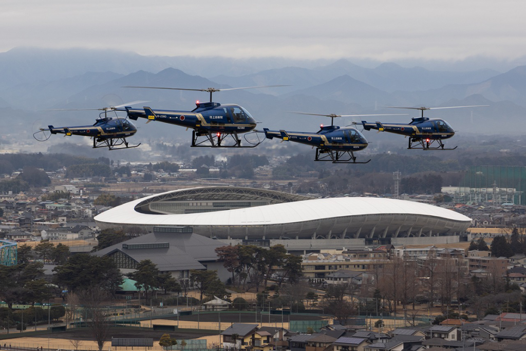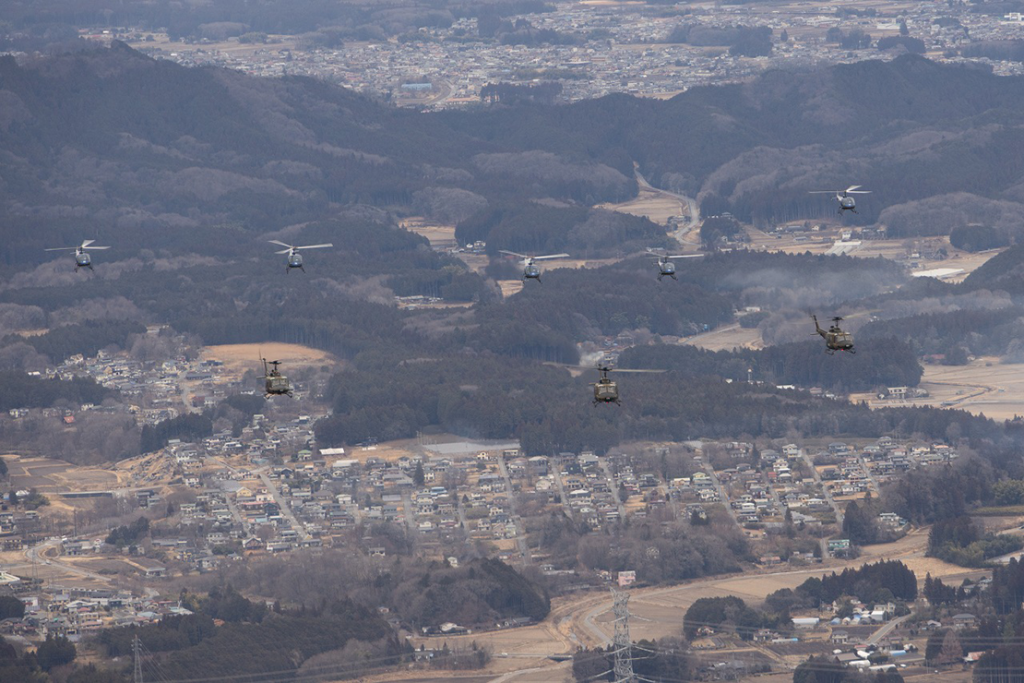 訓練に参加したのは、陸自操縦士を育成する上で基礎となる初等練習ヘリコプターTH-480B × 5機と実用機課程での教育に使用されるUH-1J × 3機の計8機と隊員約30名。宇都宮飛行場を離陸した編隊群は北上して日光市内上空へと向かい、その後鹿沼市内、下野市付近の上空を経由、最後に駐屯地上空を編隊で通過し全機無事に着陸し、年頭の訓練を終了しました。
