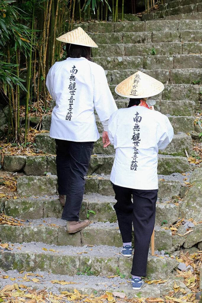 巡礼者とともに峠へ入る。舗装路の端に据えられた石段を前にすると、ここから先は別の時間が始まるようだ。この先、2時間半も持ちこたえられるのだろうか。