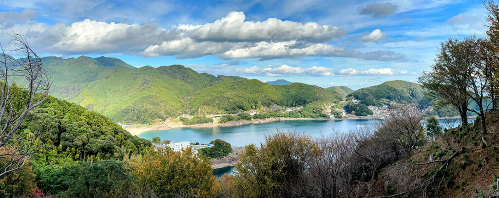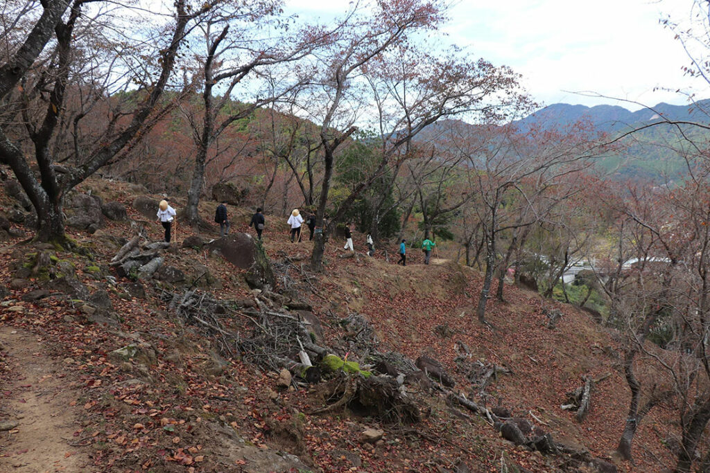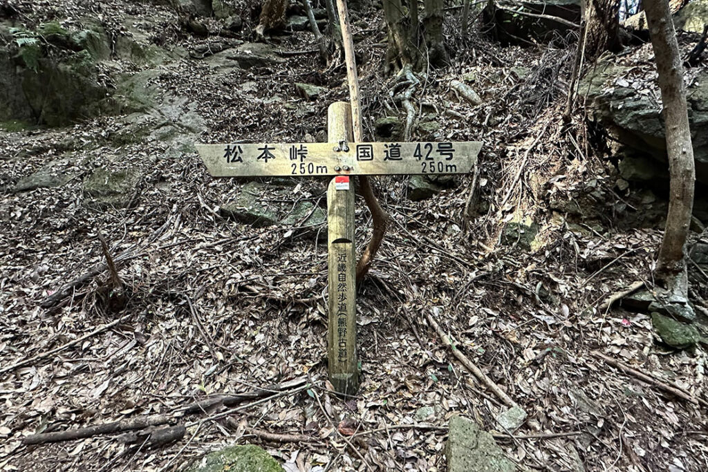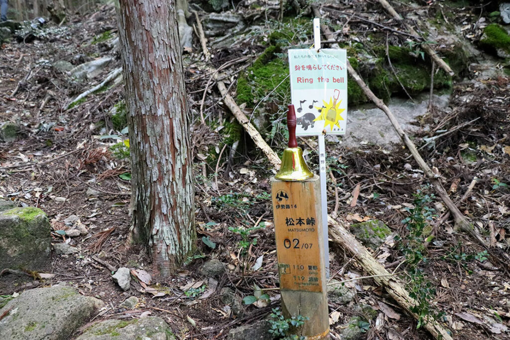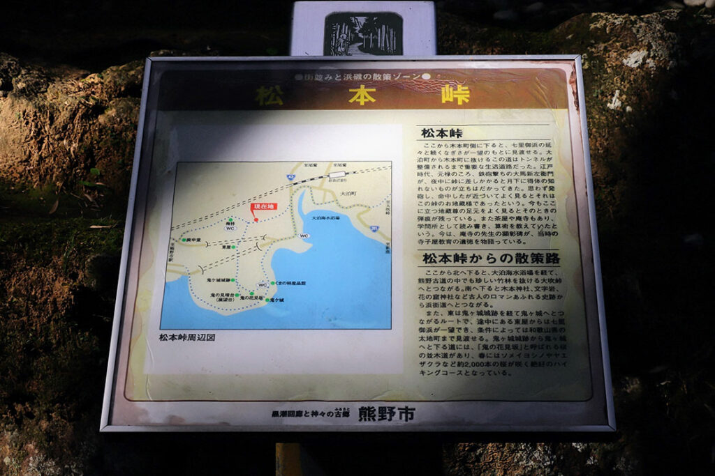 2時間半の峠旅も、ここを下れば鬼ヶ城に至る。この一帯には桜が植えられているため、春には一面が花で満ちる。その季節には、またひと味違う松本峠の表情を体感できるはずだ。