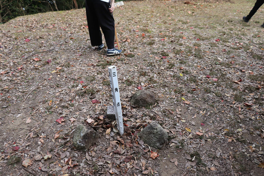 ここは、海と山が交差する特別な場所。峠道の静けさの中に、かつて「鬼ヶ城本城」と呼ばれた山城の跡がひっそりと残っている。室町時代、1523年頃に有馬忠親が隠居城として築いたとされる鬼ヶ城本城は、標高153mの山頂に位置し、熊野灘を一望できる天然の要害である。松本峠から山頂へと続く道には、今もなお三本の掘切が残り、当時の防御構造を静かに物語っている。有馬氏は熊野別当家の流れを汲む有力氏族だったが、のちに堀内氏との争いの中で滅亡した。この山城が築かれたことで、海岸の奇岩地帯を含む一帯が「鬼ヶ城」と総称されるようになったという。現在、山頂には三角点が静かに佇んでいる。これは国土地理院が管理する「公共測量の基準点」であり、破壊・移動・埋没させる行為は測量法第33条で禁止されている。うっかり触れてしまえば“犯罪”になりかねない。見た目はただの棒でも、その役割は決して軽くない。