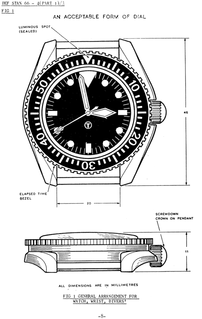 一機何億ドルもする最新鋭ジェット戦闘機から、ボルト、ナットにいたるまで、複雑な軍機構のなかで、正しい製品が正しい部署へ納入になるまでは、様々な問題が生じるであろうことは、容易に想像できる。それを解決するために軍では、行動の規範となるマニュアルや規格書であるスペックが、あらゆる面において整備されている。戦闘機などに較べればはるかに小さい存在であるミリタリーウオッチにしても、軍で使用される以上スペックが用意されているのはいうまでもない。