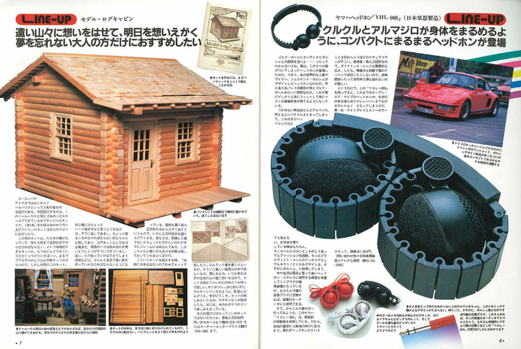 ハイ、これが23号の表紙です。「LINE••UP」で紹介しているポルシェデザインがデザインした当時最新鋭のヤマハのヘッドホン「YHL-006」が真ん中に鎮座ましましてます。