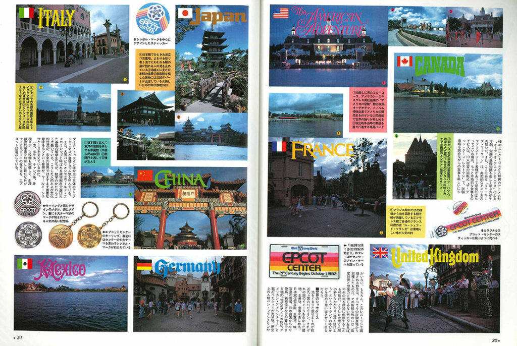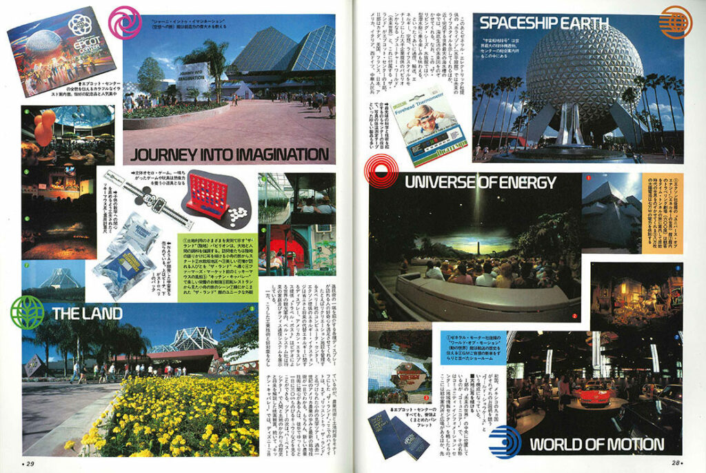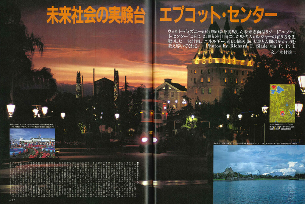 カラー6ページの「未来社会の実験台 エプコット・センター」。エプコット(EPCOT)とは、実験的未来型都市 “Experimental Prototype Community of Tomorrow” の略称。1982年に開演したディズニーパークですね。現在人気のあるアトラクションは、「ガーディアンズ・オブ・ギャラクシー:コズミック・リワインド」のコースターだそうです。