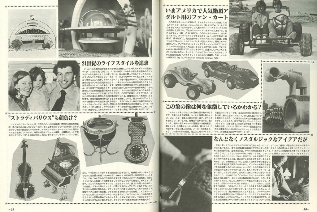 「いっこうに失業問題が改善されぬ世相に挑戦しようと考えたイギリスの画家のマイク・スコット氏(30才)は、いま21世紀にふさわしい完全自給態勢のライフスタイルを先取りしようと計画している。無人島を買って住もうというのだが、ふつうならそこでロビンソン・クルーソーのようなサバイバル風なライフスタイルを夢見るところだが、そのへんがスコット君の場合はちがう。先導技術の粋を集めた超モダンな住空間を建設して、つまりサバイバルを高度技術化したような生活を営もうというのである。まず、住空間の主要部分はバブル状の半球形ドーム、ガラス張りで太陽エネルギーを充分に生かしたソーラー技術を結集したもの。風車による自家発電装置で電力をまかない、ドーム内の温度をたもつため出入りは地下トンネルのドアを通じて行なう形式。この地下にはキッチンやバスルームなど自然の湧水を利用した水利設備が設けられる。食糧は主として水栽培による野菜で、菜食主義的傾向が強くなるはずと覚悟している。屋上のパラボラ・アンテナで世界のテレビ放送を捉える構想と、まさにエレクトロニクス時代のロビンソン・クルーソーというわけ。問題はこの計画実現のための資金で、ざっと150万ポンド(約5億円)。すでに大手メーカーが技術や製品援助を申し入れているので、資金はなんとかなりそうとスコット君は楽観。高価な夢となりそうだ。」とのこと。