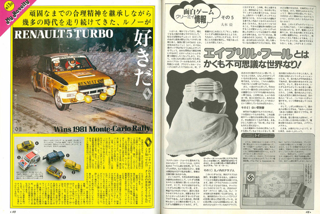 「My Novelty」はカラー3ページ構成。今回は「ルノー」です。言わずと知れた、1898年に設立されたフランスの自動車メーカーですね。さすがはルノー、ノベルティも洒落てます。