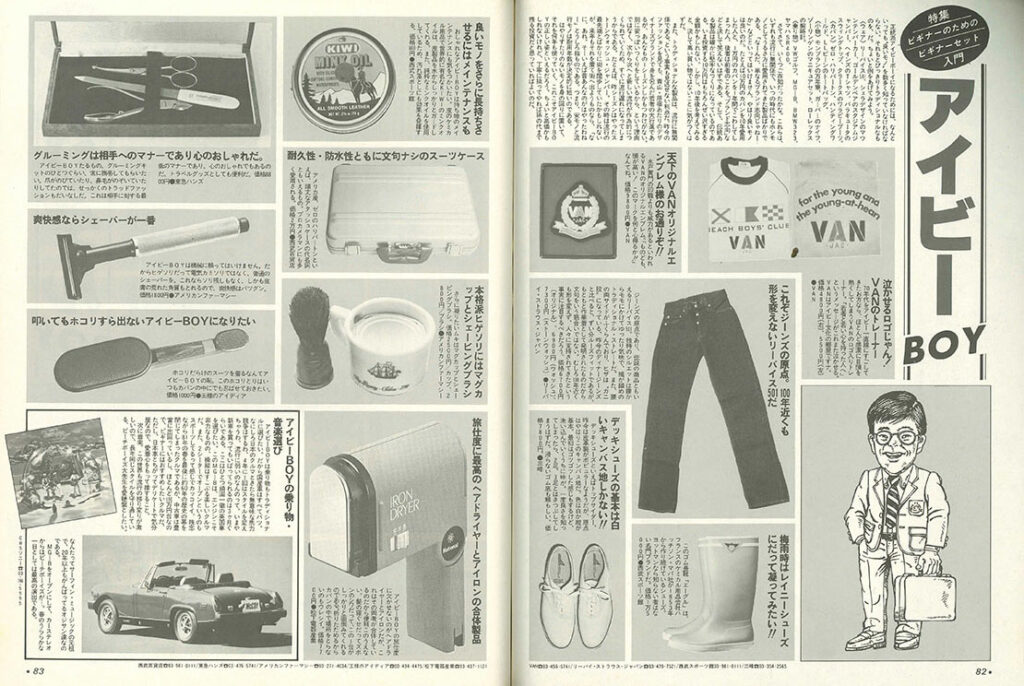 続きまして、モノクロ12ページ構成の「特集 ビギナーのためのビギナーセット入門」です。でもって、なんのビギナーなんでしょうか? 「アイビーBOY」「デジタルBOY」「カメラBOY」「サウンドBOY」「サバイバルBOY」「スポーツBOY」というラインナップでした。