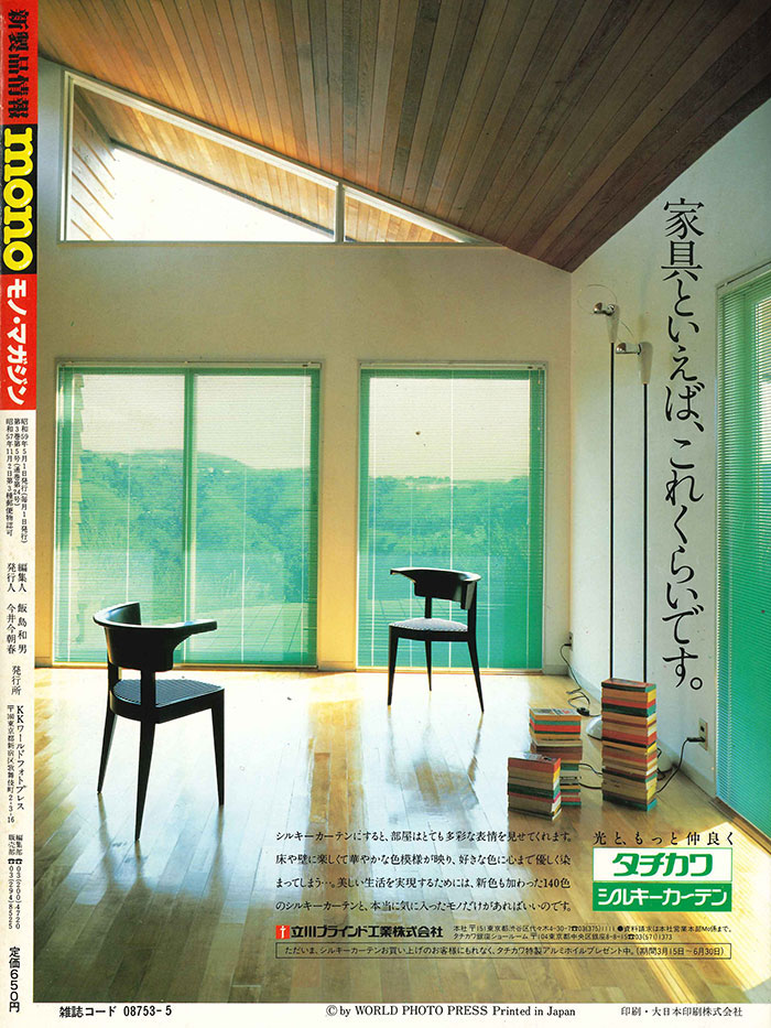 表4は立川ブラインド工業の「タチカワ シルキーカーテン」の広告です。「家具といえば、これくらいです。」というコピーがシビれますね。こんなふうに部屋を使ってみたいもんです。