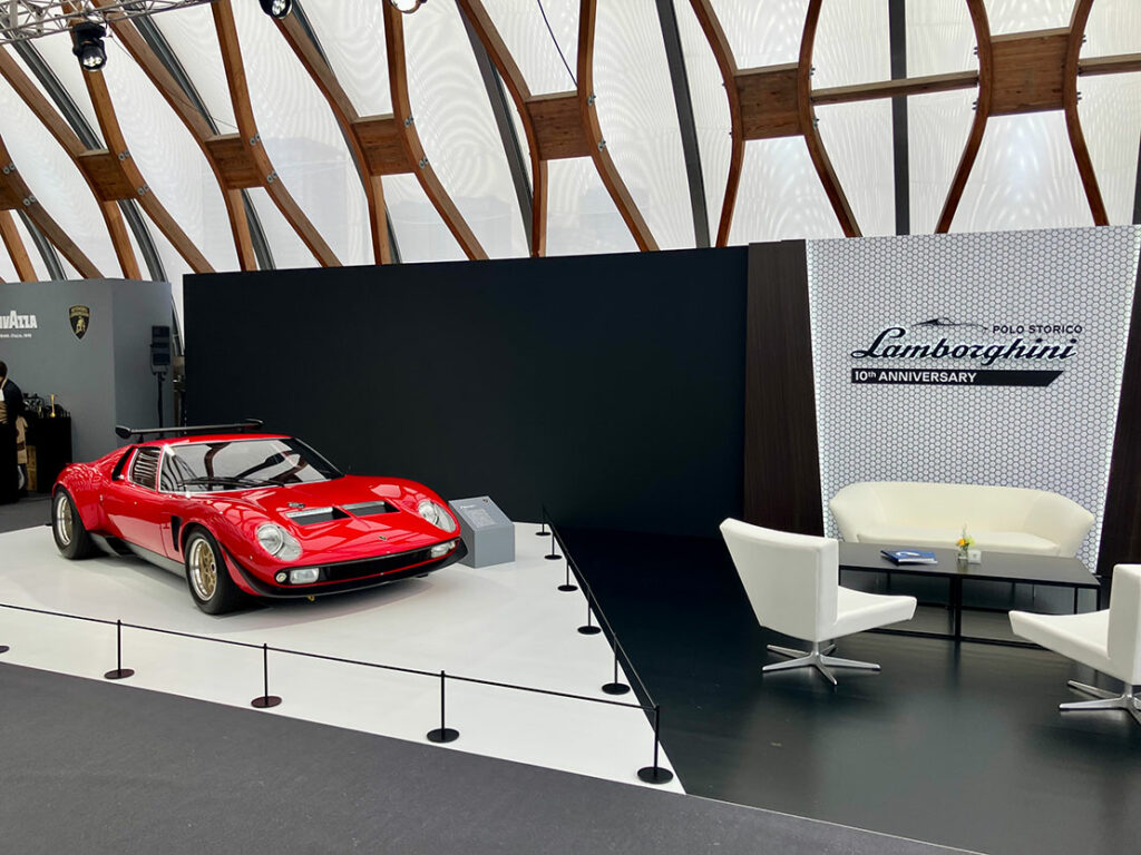 設立10周年を迎えたLamborghini Polo Storicoの展示では、ブランドのヘリテージを称え、レーシング仕様に再構築された唯一無二の「Miura SVR」も披露された!