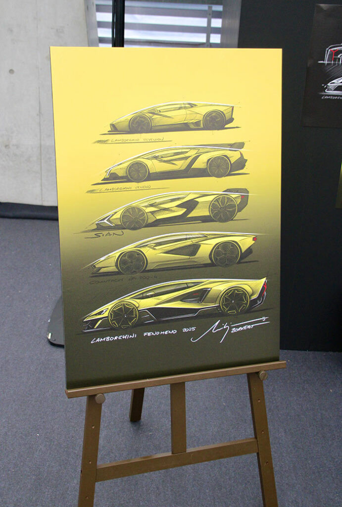 一方、アウトモビリ・ランボルギーニDesign Director のMitja Borkert(ミィティア・ボルケルト)が率いる「Centro Stile」スタジオでは、“Few Off” モデル「Fenomeno」のライブスケッチを通じて、ブランドのデザイン哲学を創造的に表現! その世界観を来場者の前で具現化し、ファンを魅了した。