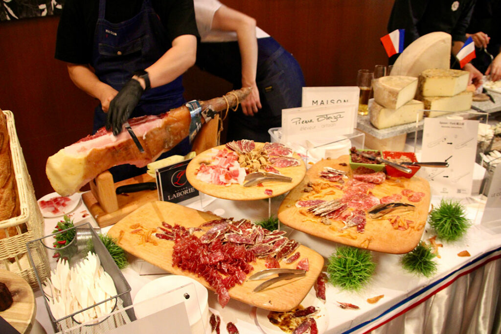90年の伝統を守るオーヴェルニュの豊かな自然の中で育てられた放牧豚を使った、フランスならではの美食「La Borie(ラボリー)」のシャルキュトリも提供され、多くの人をもてなした。
