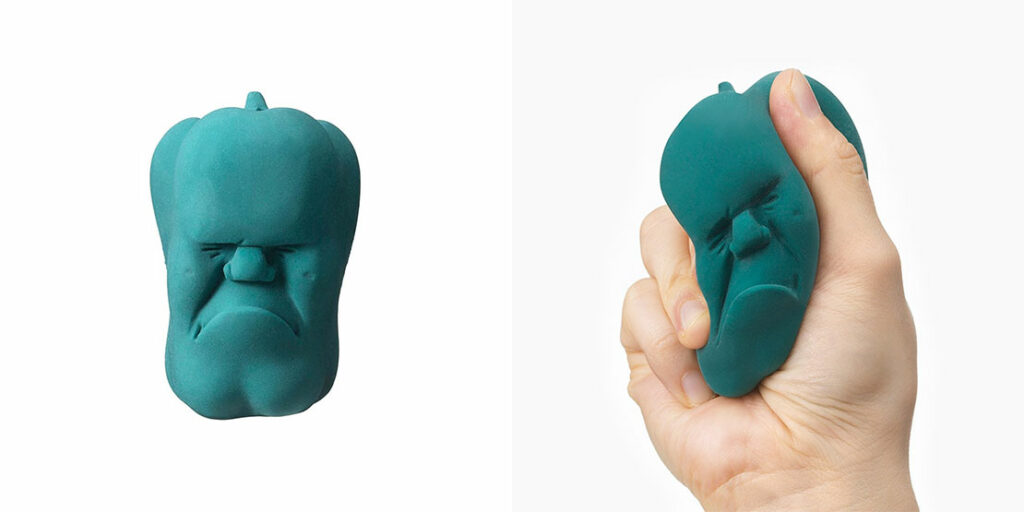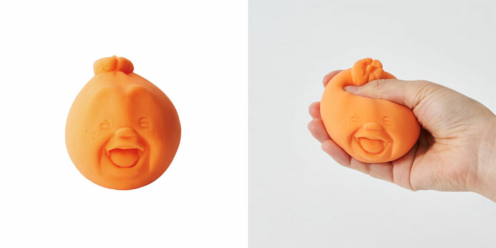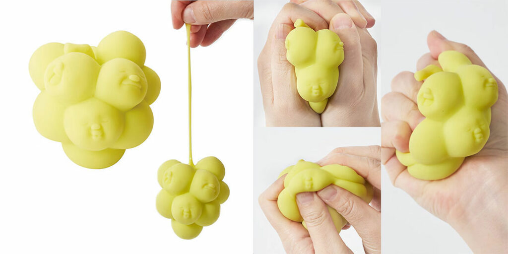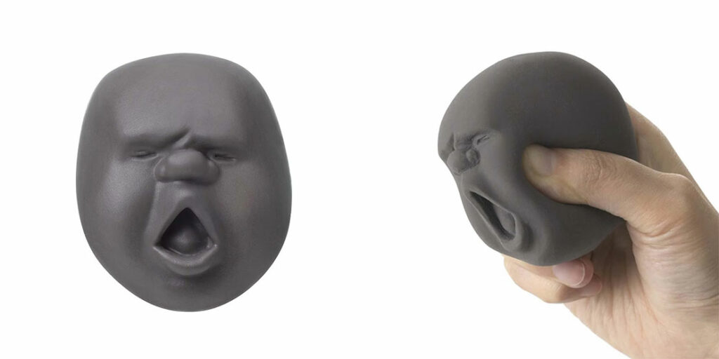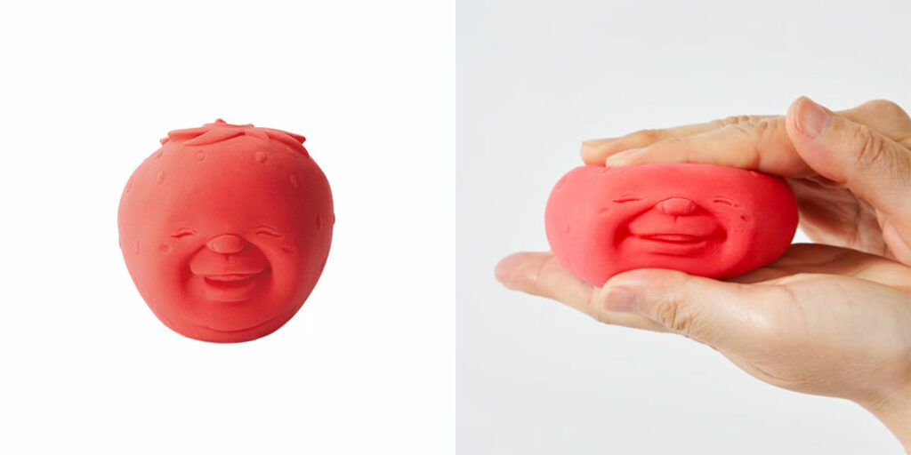 ニギニギすると変な顔に。握り心地も抜群なエラストマー製のストレス解消グッズ。価格各2970円