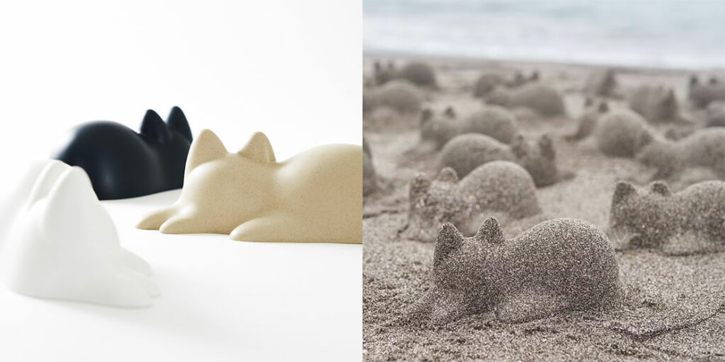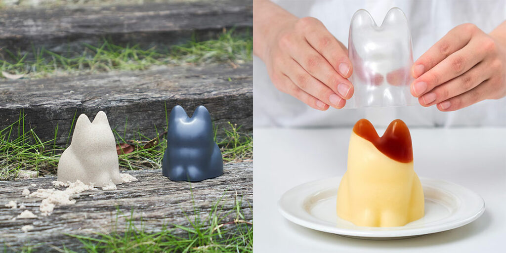 ごはんやゼリー、砂や土のネコシルエットを無限にうみ出す、ポリプロピレン(竹粉末)製のネコ型カップ。容量は約715cc(ご飯は約800g)。価格2970円