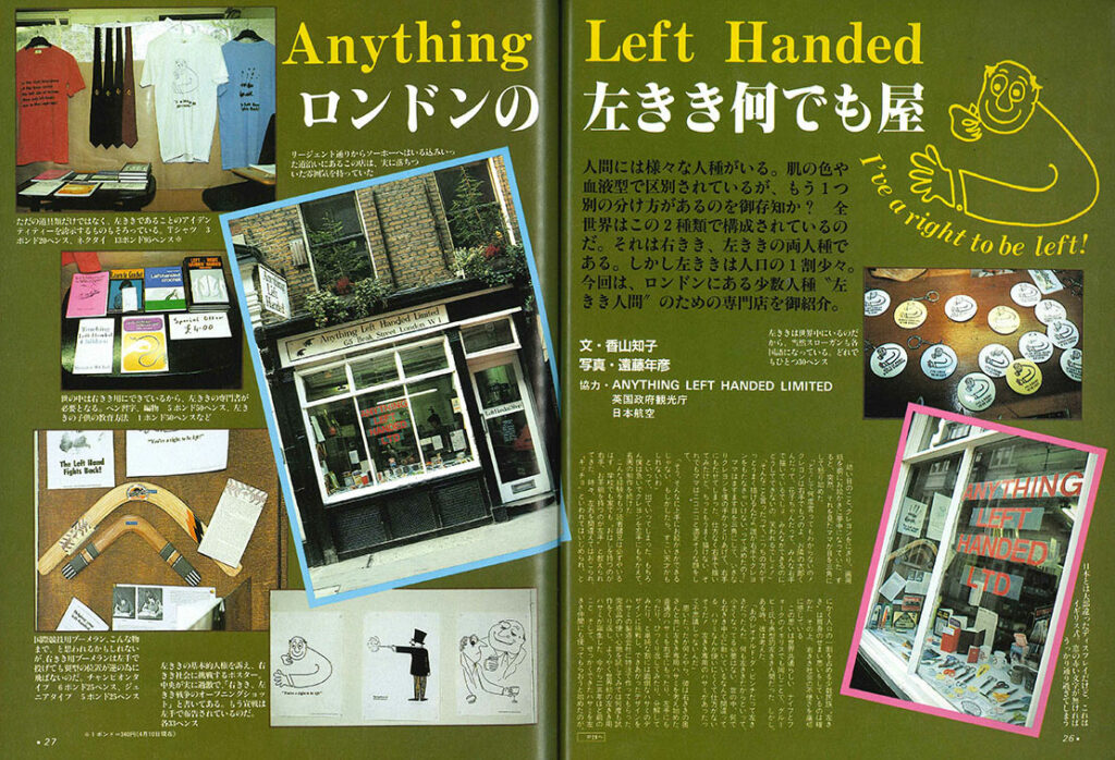 「Anything Left Handed ロンドンの左きき何でも屋」は、カラー6ページ構成。ブーメランって右利き用と左利き用があるって知ってました?