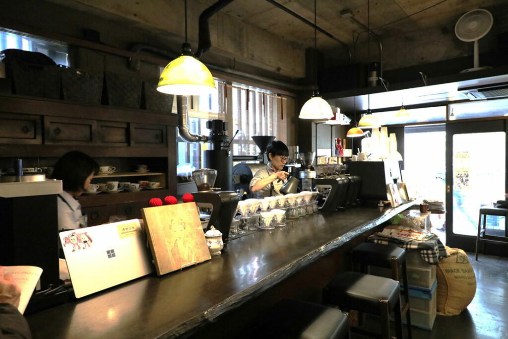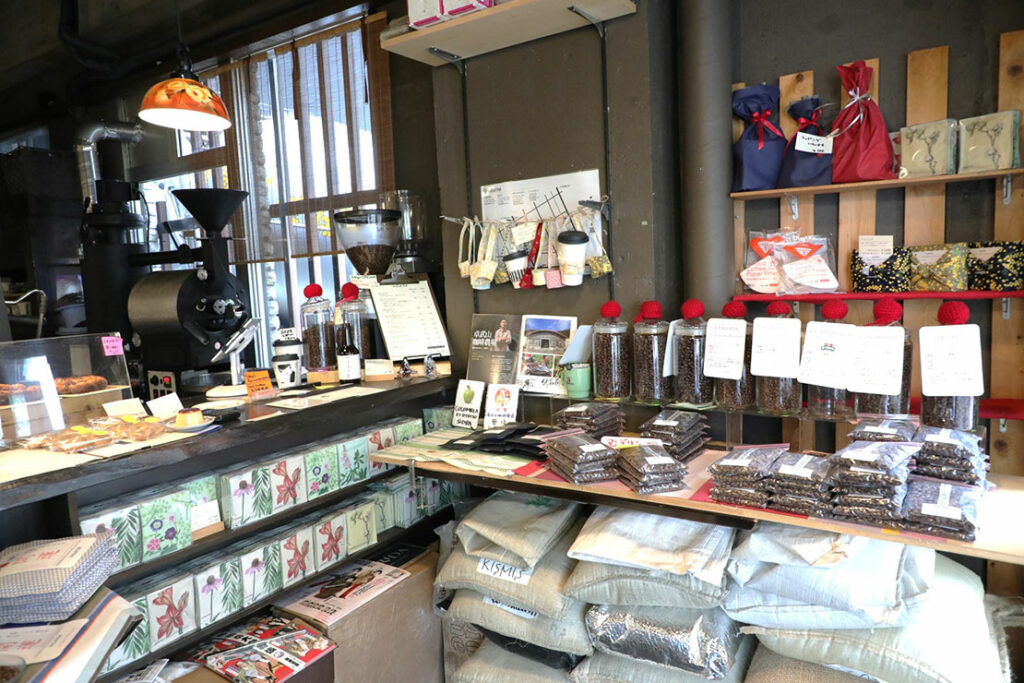 コーヒー豆の自家焙煎機が回り、香ばしい空気が流れ、店内を活気づける。
