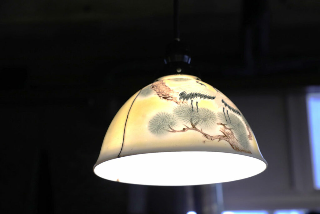 割れたシェードに藤原さんが丁寧に金継ぎを施している。これもまた味わいがある。