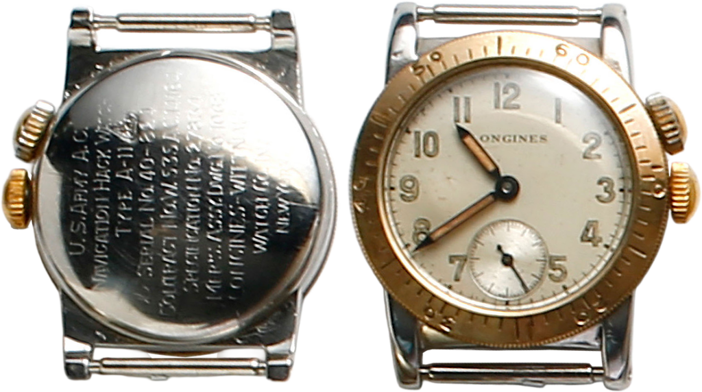 ウイットナー製のウイームス・タイプのA-11。セコンドセッティングができ、陸軍航空隊用。裏ぶたの刻印は海軍の士官に海軍航空隊から贈られたもの。
