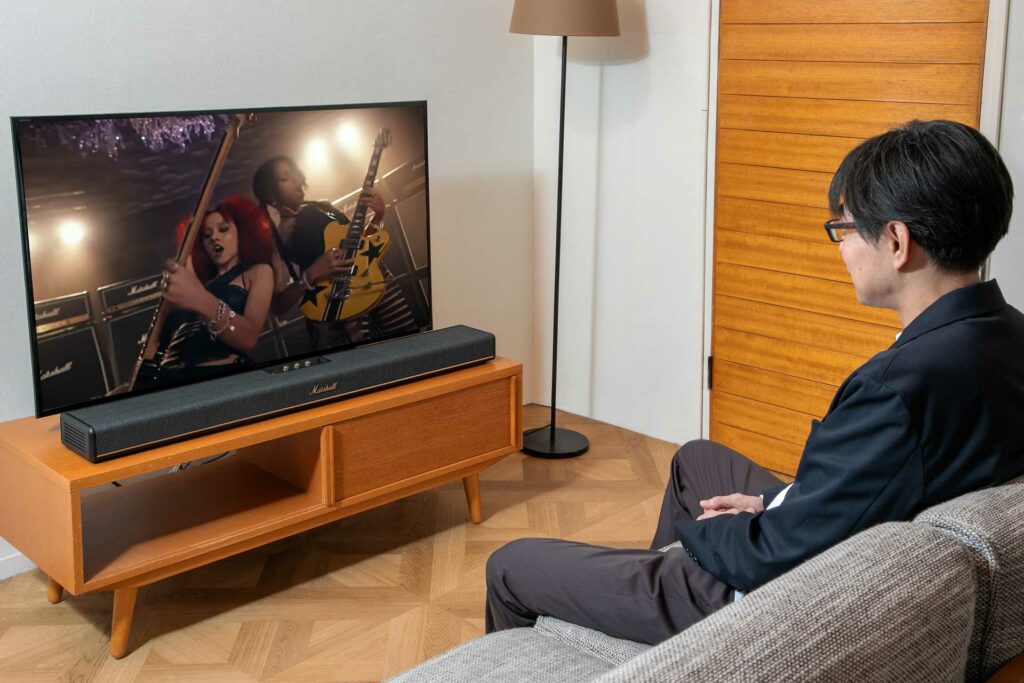 Marshallが満を持してブランド初となるサウンドバーを投入したのには当然、明確な理由がある。現在では多くの人が音楽を楽しむためにサウンドバーを利用しているが、いま市場にある多くのサウンドバーは果たしてテレビと音楽の両方に最適化されていると言えるのだろうか? そんな疑問からMarshallは、テレビサウンドはもちろんのこと、音楽再生時のサウンドに徹底的にこだわり尽くしたプレミアムなサウンドバーを開発していった。