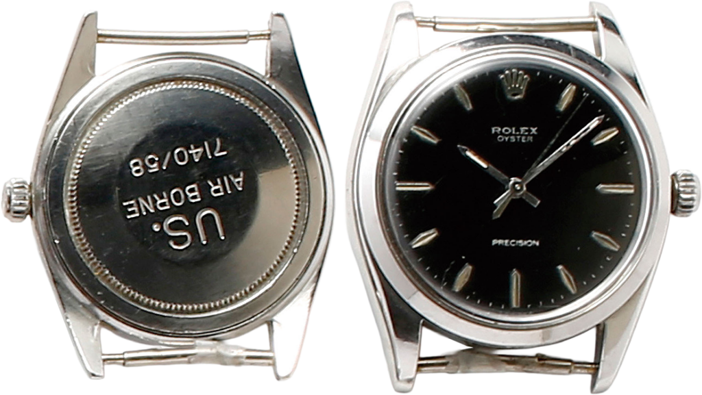 アメリカの空挺部隊が採用したオイスター。高精度の手巻き。アメリカ軍の空挺部隊とはっきり判読できる刻印が入っている。