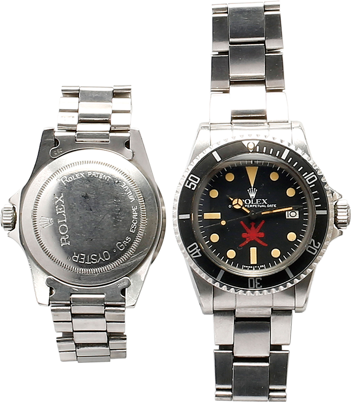 1970年代。オマーンの紋章が入ったシードゥエラー、Ref.1665。610m防水。裏ぶたに特別な刻印はないが、軍の貢献者に贈られた時計とされる。