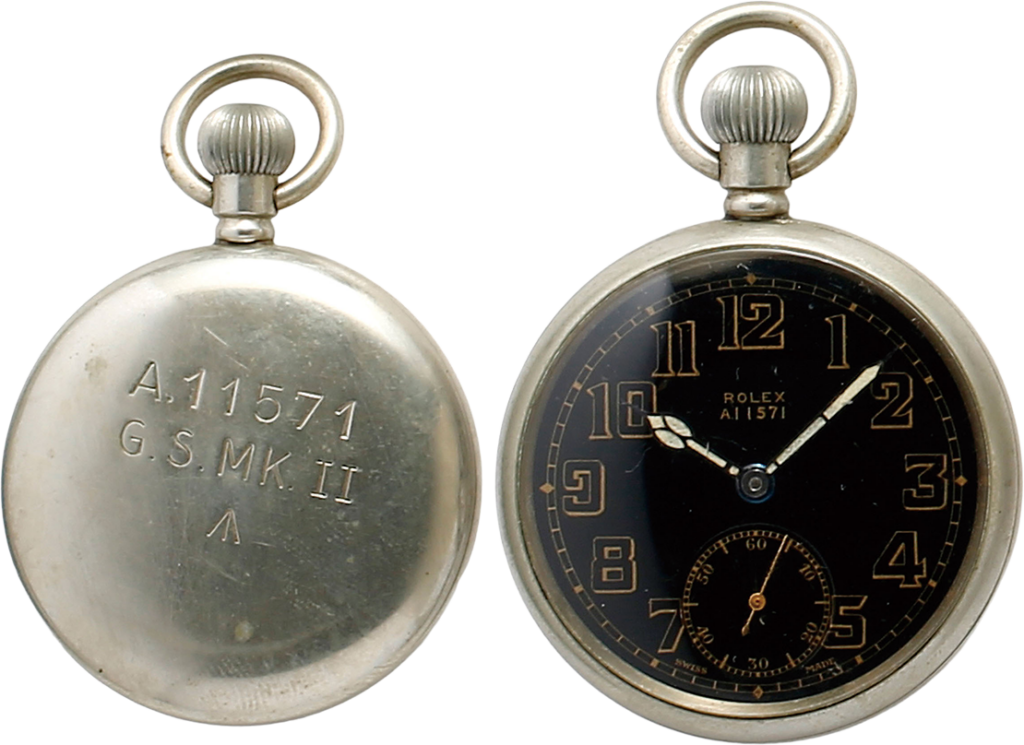 1940年代。イギリス空軍が採用したオイスター・ロイヤル。耐衝撃性を備える。1939年から46年の管理コードが記され、AMは航空省、6Bはパイロット用を示す。