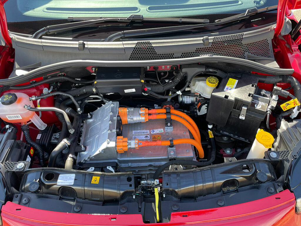 エンジン、いやモーター搭載位置は500e同様フロント。モーターの最高出力は155PS。このパワーを伝えるタイヤもフィアットの17インチに対して18インチを採用する。モーターはフィアット版のそれをチューニングしたモノと思いきや型式も違うことにびっくり。500eは118PSなので出力3割アップのアバルトスペシャルになっている。