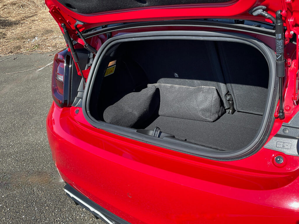 そしてこのツーリスモも同様でラゲッジルーム下には擬似エンジン音を出すためにLLサイズのピザもびっくりなスピーカーが収まっている。このスピーカーのおかげ(?)で充電用のアダプター、ケーブルなどが床下にしまえず、荷室の一角を占領してしまう。