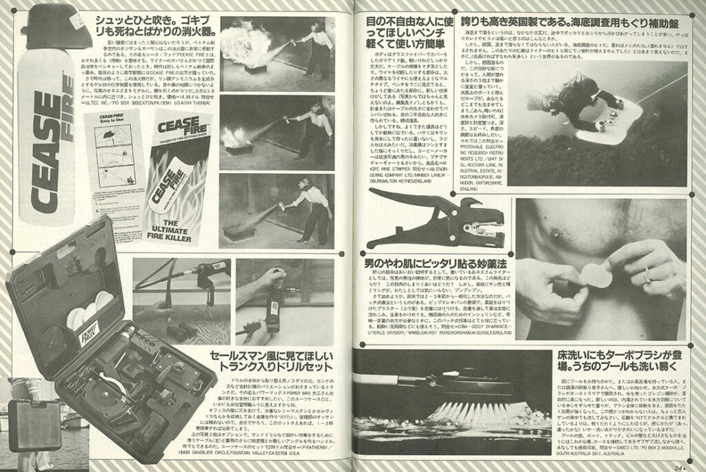 「My Novelty」はカラー3ページ構成。今回は1978年にスタートした資生堂の男性用化粧品ブランド「タクティクス」のノベルティ「タクティクス・デザイン」です。このタクティクス・デザインは資生堂『花椿』でアートディレクターも務めたグラフィックデザイナーの仲條正義さんの手によるモノ。そのラインナップは今見てもカッコイイ。かつて帝国ホテルアーケード内にタクティクス・デザイン・ショップも存在しました。