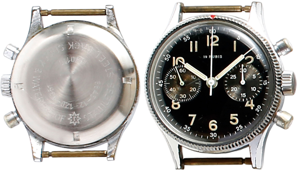 ハンハルト製のクロノグラフで第二次世界大戦後に西ドイツ空軍が採用。12-121-5208はハンハルト製の手巻きクロノグラフに与えられたNATOコード。