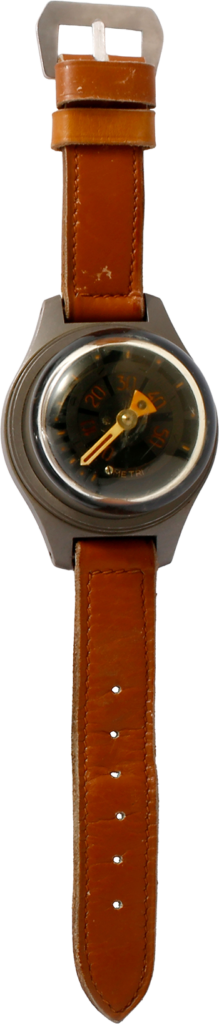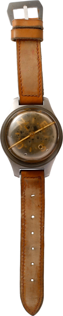第二次世界大戦中にイタリア海軍が採用した、腕に装着するブルドン式水深計(水圧の変化を感知して深さを計測する方式)で水深30mまで計測が可能だ。ケースはスチール製でドーム状のプレキシガラスに覆われ、腕に装着するためのストラップがついている。