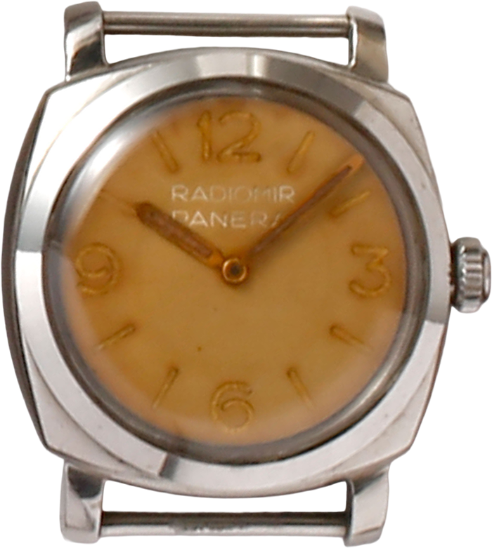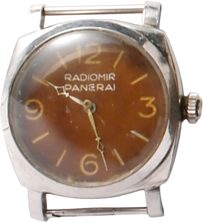 1950年代半ばにエジプト海軍の依頼で製造されたラジオミール・パネライのプロトタイプ。従来のラジオミールよりも大型のケースで、5分間隔のマーカーを付けた回転ベゼルが特徴だ。