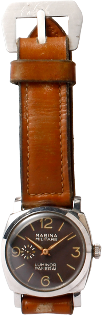 第二次世界大戦後に作られたイタリア海軍用のルミノール・パネライ。文字盤に記されたマリナ・ミリターレはイタリア海軍を意味する。ルミノールは1949年1月にパネライが特許を取得した、トリチウムを原料とする化合物の蛍光塗料を示す。