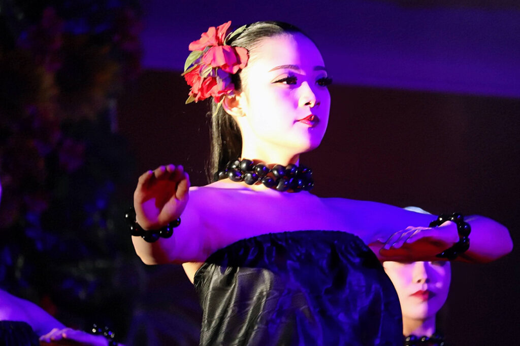 <アレコキ>は、ハワイの伝統舞踊の中でも特に生活の喜びや共同体の明るさを表現する曲として知られている。舞台では、この “生活のリズム” が鮮やかに立ち上がる。ハワイ文化の根底にある「アロハ=生きる姿勢」が、ここでは最も素直な形で表現されている。