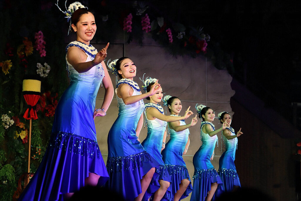 「Haku Lei~アロハの絆~」の中盤、舞台の空気がふっと柔らかく、そして軽やかに流れ始める瞬間がある。それが〈ワヒネ ホロ リオ〉だ。“ワヒネ=女性”、“ホロ=走る・流れる”、“リオ=声・歌”。この曲名が示す通り、女性のしなやかな力と、生命の流れを象徴するパートとして構成されているぞ。