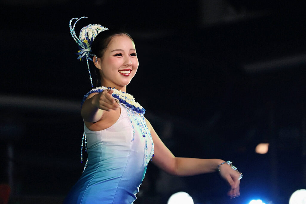 ひときわ柔らかな空気をまとって登場するのが〈シナ オエ〉だ。にぎやかな曲が続いたあと、ふっと照明が落ち着き、舞台に夕暮れのような温度が広がる。ダンスは全体的にゆったりとしたテンポで、腕の動きが特に印象的だ。足元は軽く揺れるようなステップが中心で、強さよりも“そっと寄り添う”ニュアンスが前に出る。
