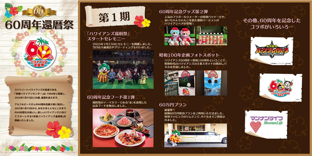 2025年1月15日にスタートした「ハワイアンズ60周年還暦祭」は、1期・2期・3期と1年間にわたり、多彩なイベントで館内を盛り上げてきた。そして2026年1月15日、ついにフィナーレを迎え、ハワイアンズは創業60周年という大きな節目に到達した。