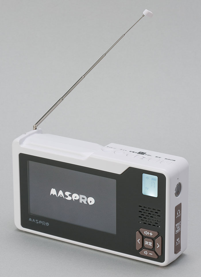 手回し充電に対応する持ち運べるテレビ・ラジオ。AM/FMラジオのほか、テレビのワンセグ放送を受信、視聴できる。使用する電源は単3形乾電池×3本、内蔵バッテリー、ACアダプター、モバイルバッテリーの4タイプに対応。長期保管対応の内蔵バッテリーを採用し、備蓄用としても最適だ。