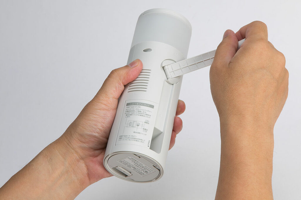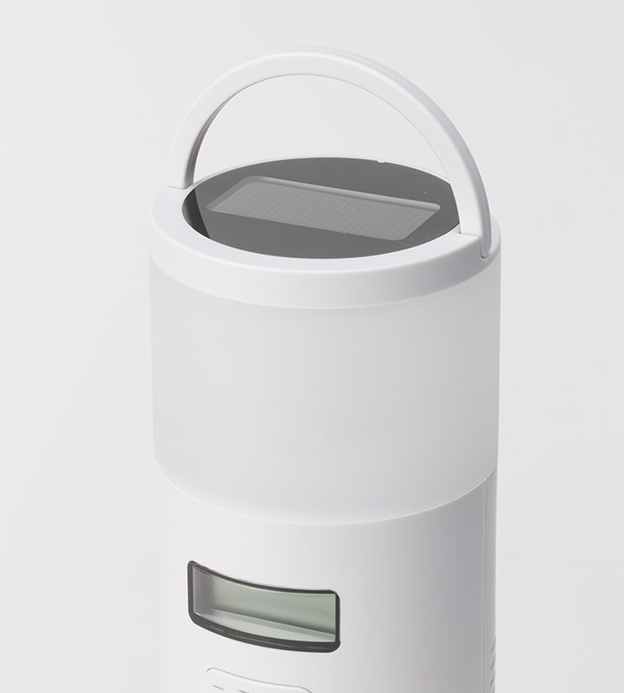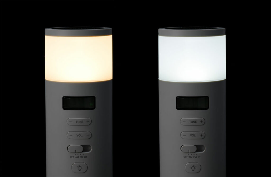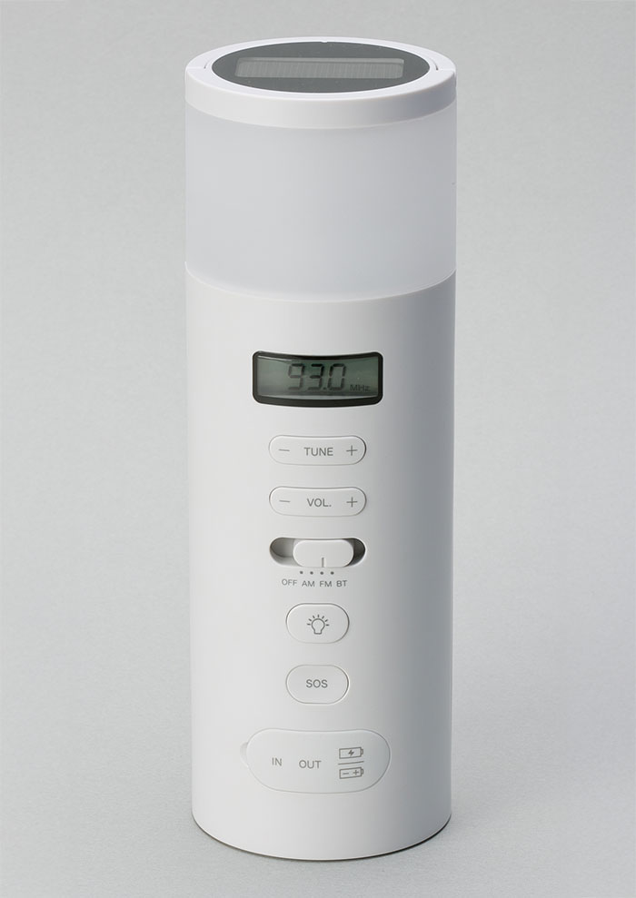 防災リュックのなかにも収納しやすいタテ型のスリム防災ラジオ。ACアダプタ、ソーラー、手回し、乾電池、内蔵充電池の5WAY電源に、AM/FMラジオ、LEDランタン、Bluetoothスピーカー、SOSアラームの5つの防災機能を搭載。インテリアにとけ込みながらもしっかり備える新しい防災のカタチを提案。